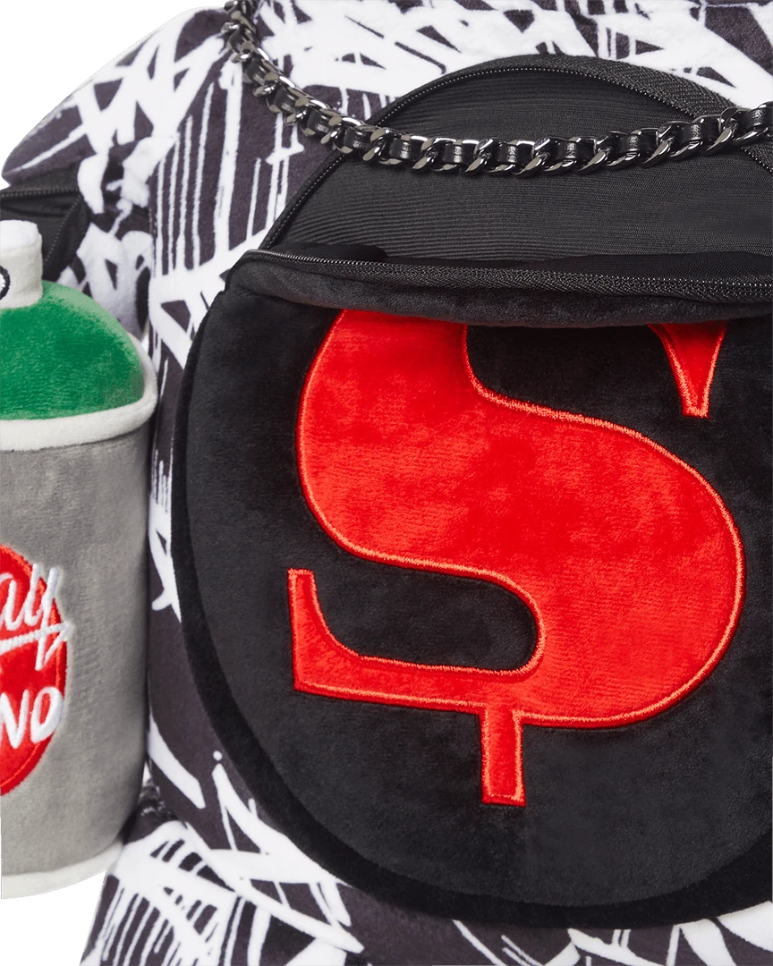 Gold Necklace. Spray Can. Dimensions: 25” x 7” x 12“ • Zippered pocket on belly • Zippered pockets on each arm • Large zippered pocket on back panel • Adjustable Straps for custom sizing