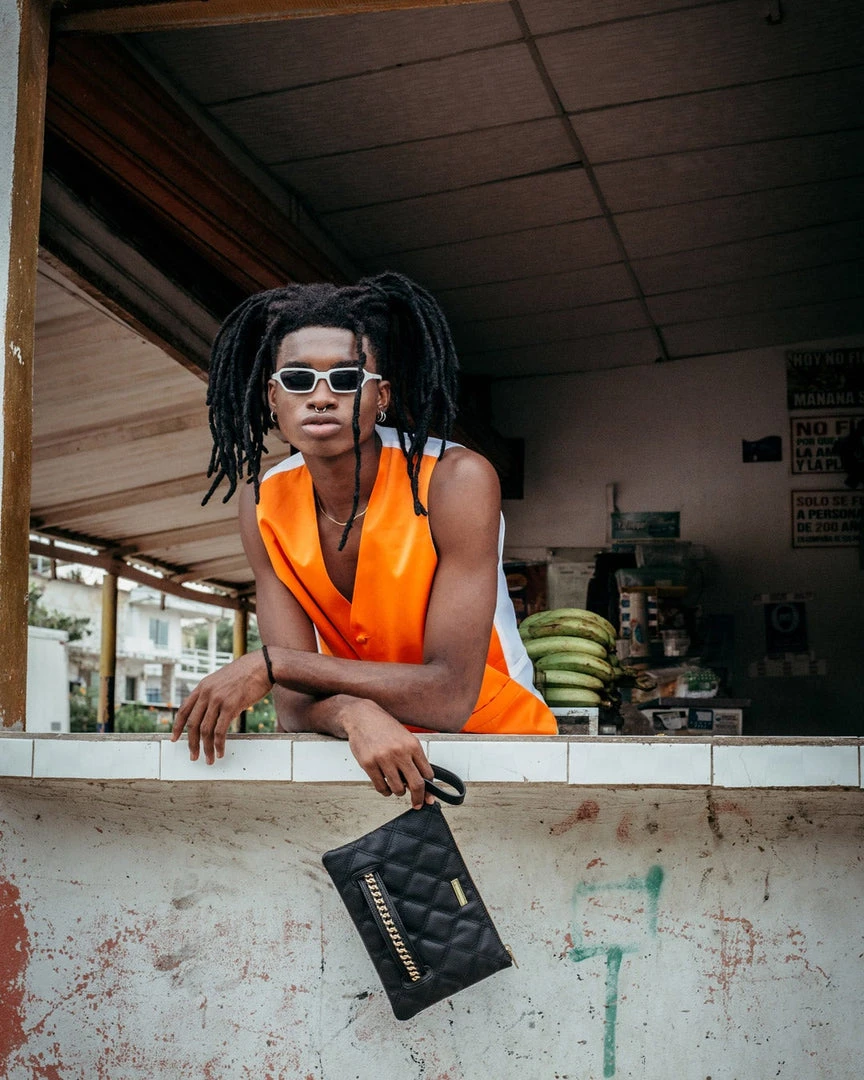 Pouch with removable wristlet strap, Handle on front panel, Zip Closure, secret stash pocket on side seam