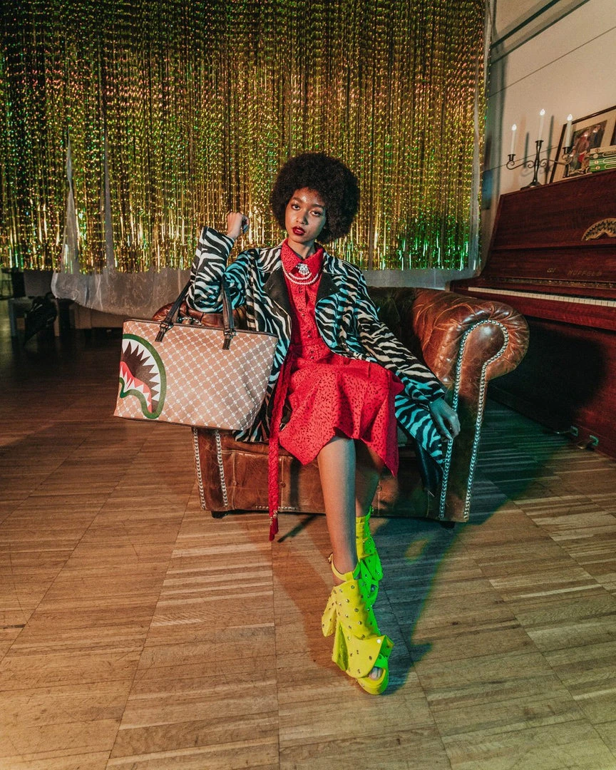 Dimensions: 19″ x 6.5″ x 11.5″ • Top zipper opening • Top double handle • Sprayground keychain • Gold zippers with metal hardware