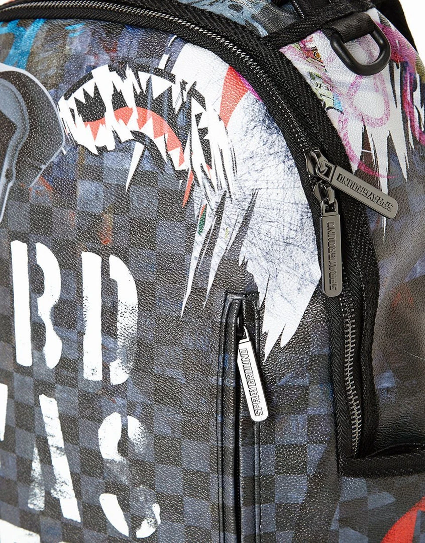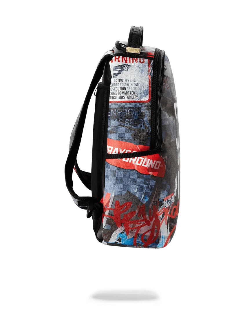Dimensions: 18″ x 6″ x 11.5″ •Vegan Leather •Front zipper pocket • Side pockets • Zippered Stash pocket • Ergonomic mesh back padding • Adjustable Straps for custom sizing • Nylon Zippers with Metal Hardware • Rubber “Sprayground Authentic” badge • Slide through back sleeve connects to Carry on luggage to free your hands