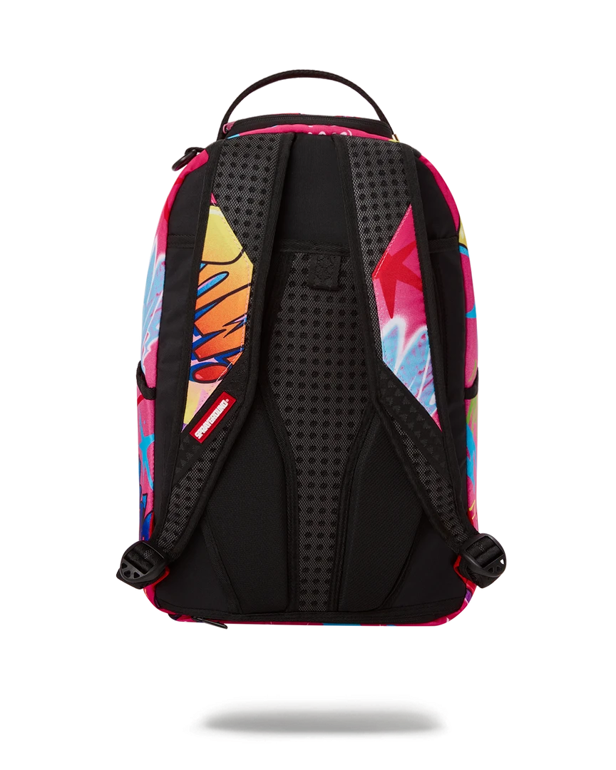 Dimensions: 18″ x 6″ x 11.5″ • Front zipper pocket • Side pockets • Zippered Stash pocket • Separate velour sunglass compartment • Ergonomic mesh back padding • Adjustable Straps for custom sizing • Green zippers with metal hardware • Metal “Sprayground Authentic” badge • Slide through back sleeve connects to carry on luggage to free your hands