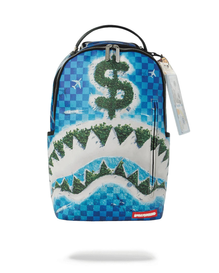 Dimensions: 18″ x 6″ x 11.5″ • Front zipper pocket • Side pockets • Zippered Stash pocket • Separate velour sunglass compartment • Ergonomic mesh back padding • Adjustable Straps for custom sizing • Silver zippers with metal hardware • Metal “Sprayground Authentic” badge • Slide through back sleeve connects to carry-on luggage to free your hands