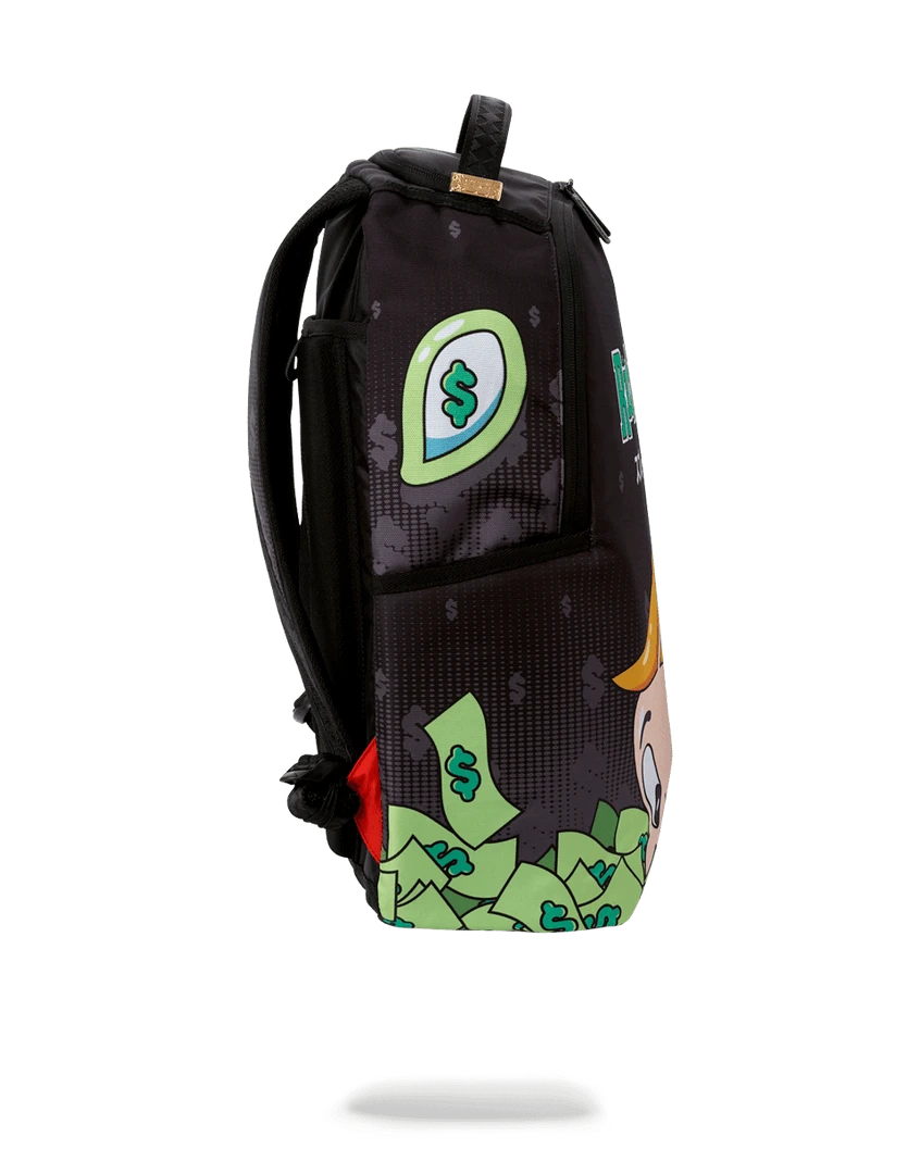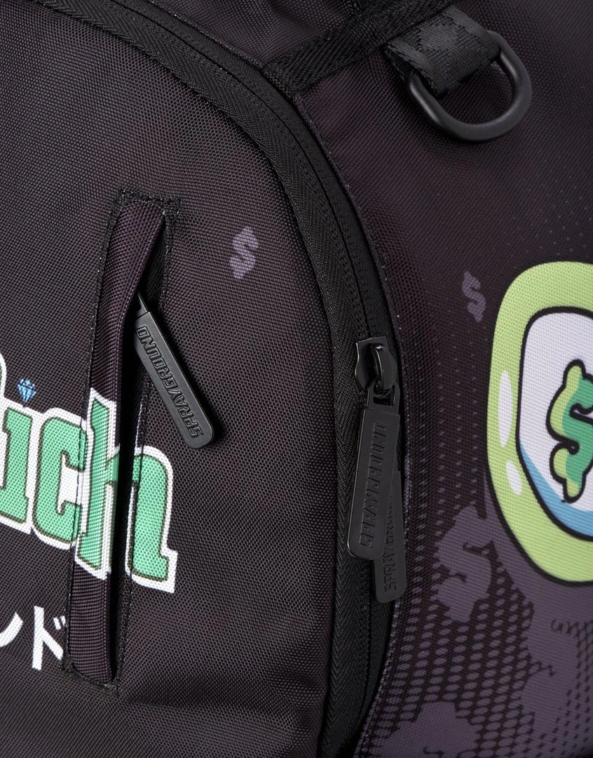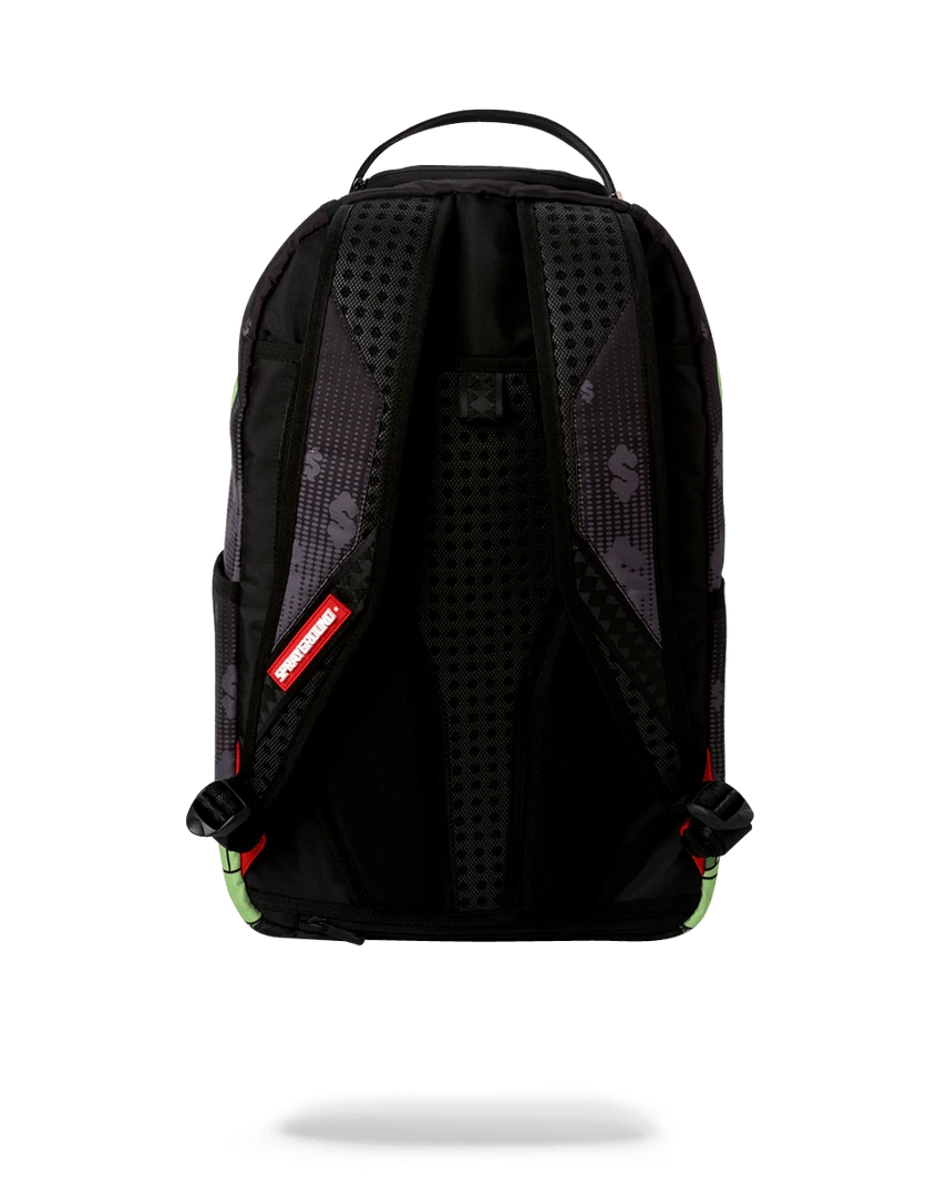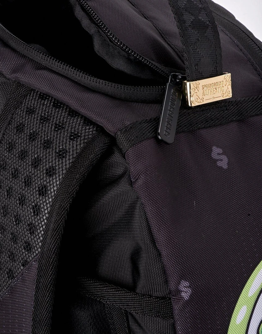 Dimensions: 18″ x 6″ x 11.5″ • Front zipper pocket • Side pockets • Zippered Stash pocket • Separate velour sunglass compartment • Ergonomic mesh back padding • Adjustable Straps for custom sizing • Black zippers with metal hardware • Metal “Sprayground Authentic” badge • Slide through back sleeve connects to carry-on luggage to free your hands