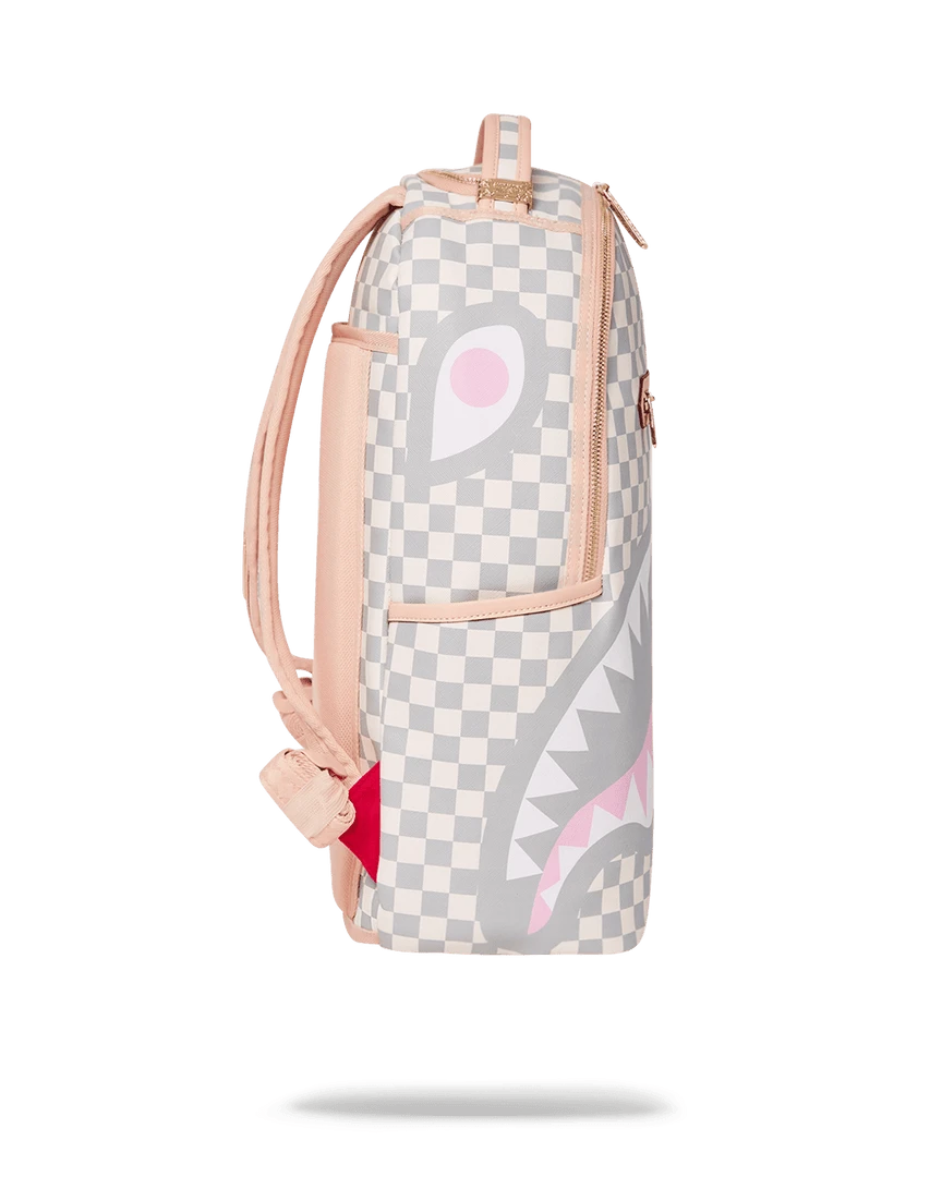 Dimensions: 18″ x 6″ x 11.5″ • Front zipper pocket • Side pockets • Zippered Stash pocket • Separate velour sunglass compartment • Ergonomic mesh back padding • Adjustable Straps for custom sizing • Red zippers with metal hardware • Metal “Sprayground Authentic” badge • Slide through back sleeve connects to carry-on luggage to free your hands