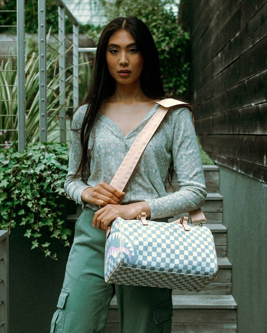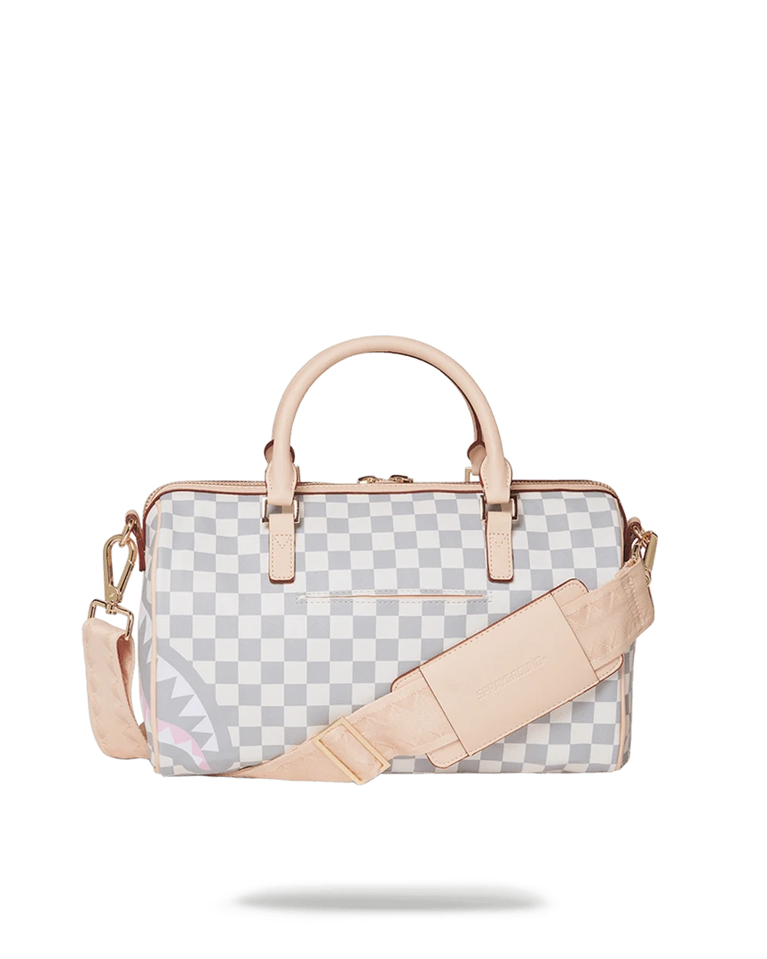 Dimensions: 8″ x 7.5″ x 13″ • Zippered top opening • Zippered pocket on back panel • Zippered side pocket • Removable adjustable strap for custom sizing with reinforced crossbody construction • Logo embossed shoulder pad for comfort • Gold zippers with metal hardware • Zippered stash pocket