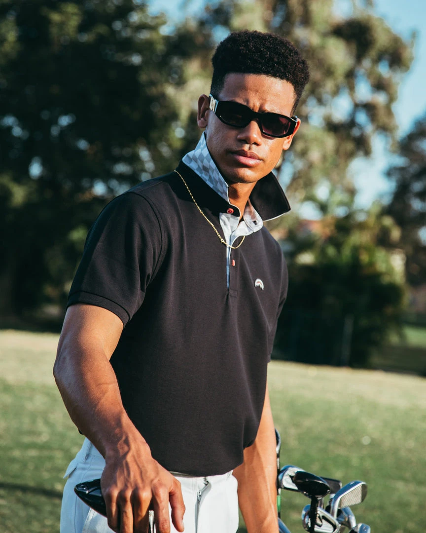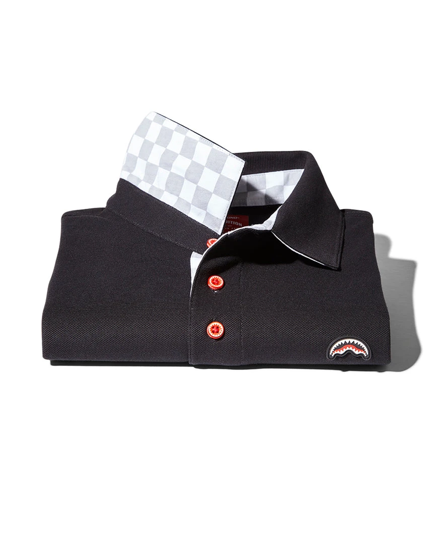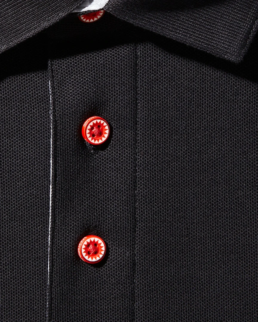 Artwork details on the inside placket and under the collar