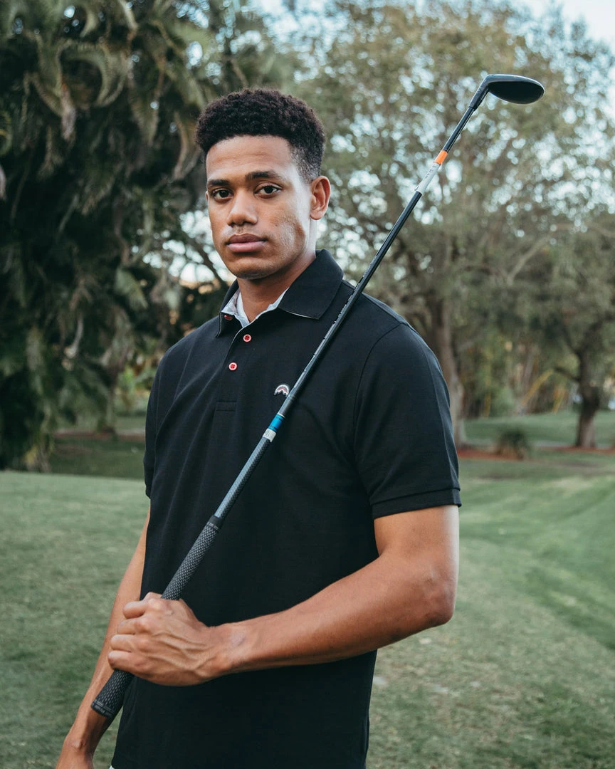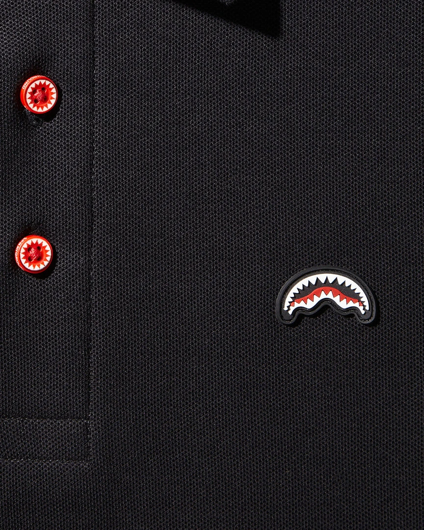 Embroidered shark mouth logo on front
