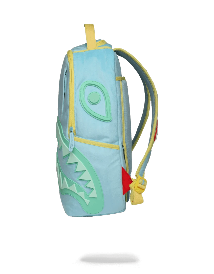 Designed in collaboration with the one and only ICY GIRL- this bag features velour fabric in a bright pastel color with a 3d molded rubber shark. Keep checking back for updates on the release of this backpack, as there are only a few available.