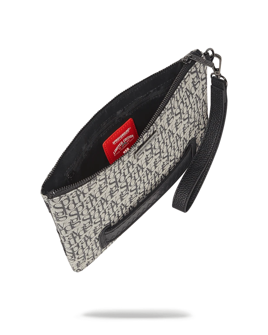 Pouch with removable wristlet strap, Handle on front panel, Zip Closure, secret stash pocket on side seam