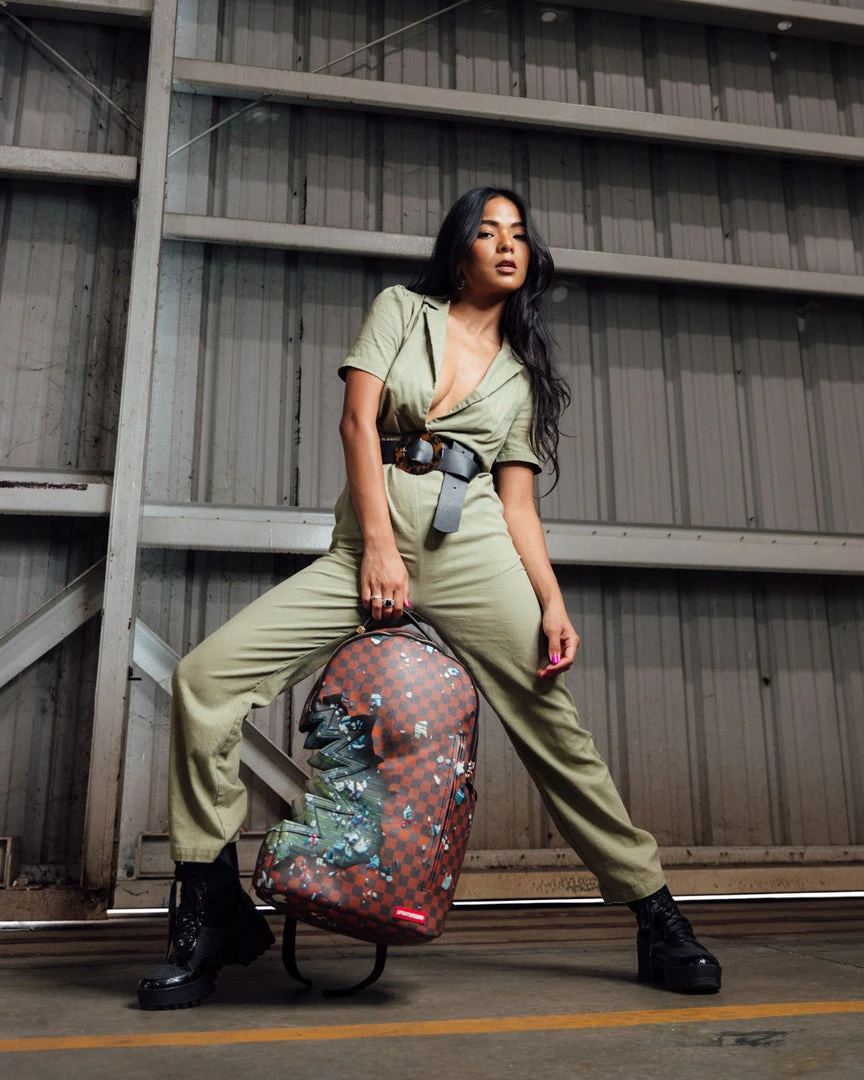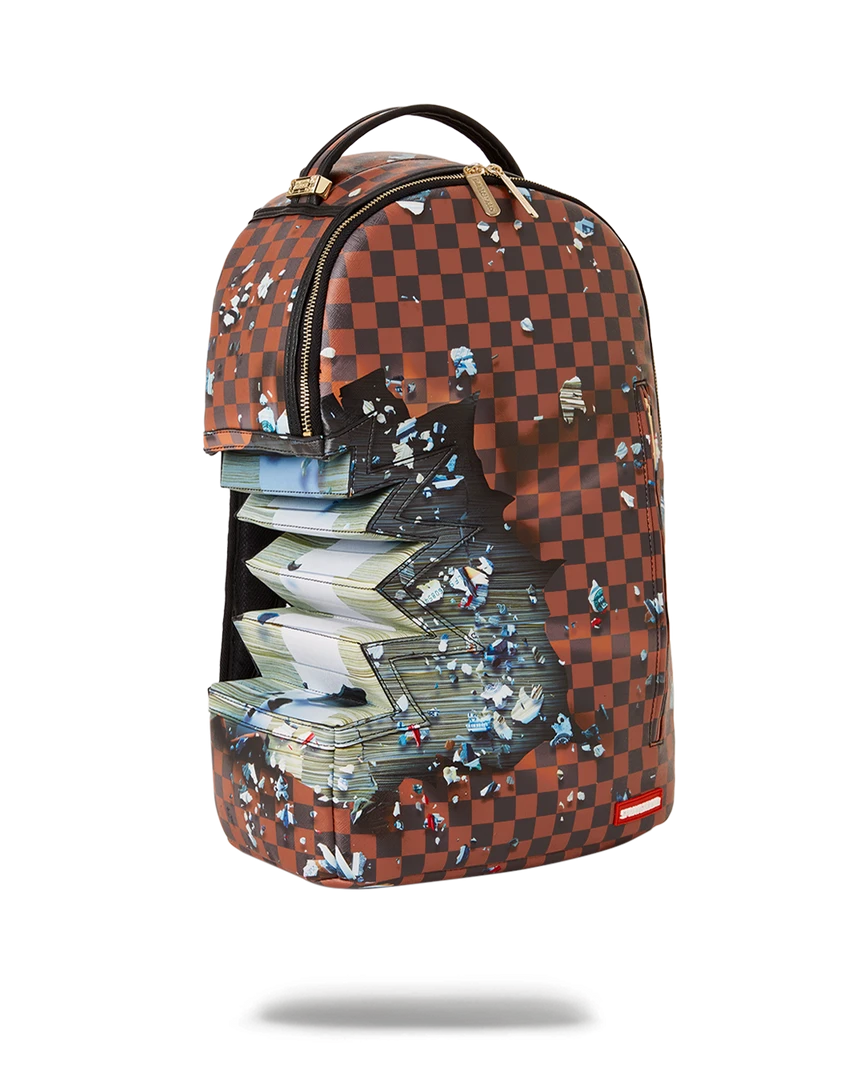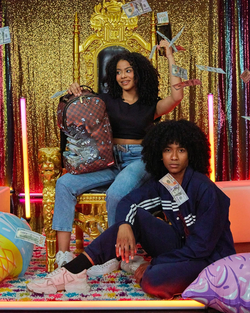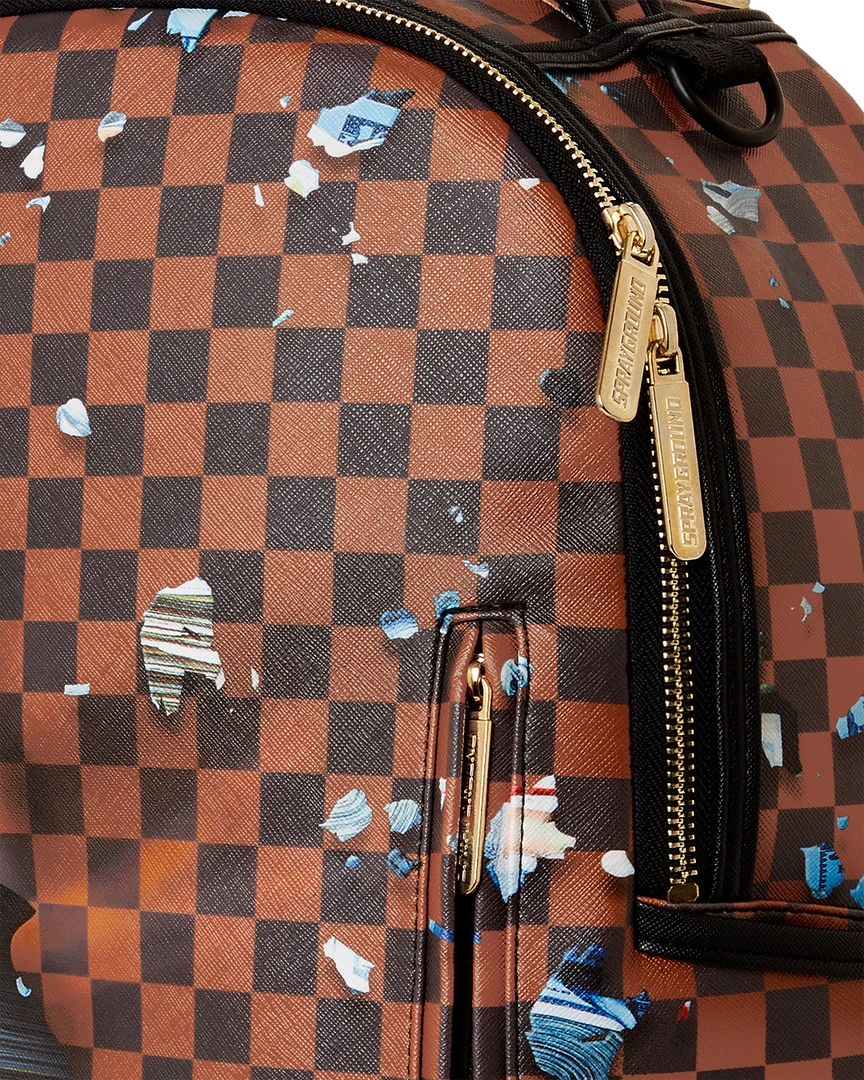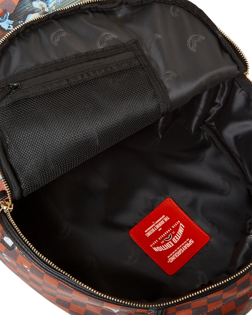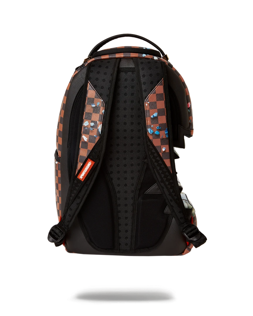 Dimensions: 18″ x 6″ x 11.5″ • Front zipper pocket • Side pockets • Zippered Stash pocket • Separate velour sunglass compartment • Ergonomic mesh back padding • Adjustable Straps for custom sizing • Gold zippers with metal hardware • Metal “Sprayground Authentic” badge • Slide through back sleeve connects to carry-on luggage to free your hands
