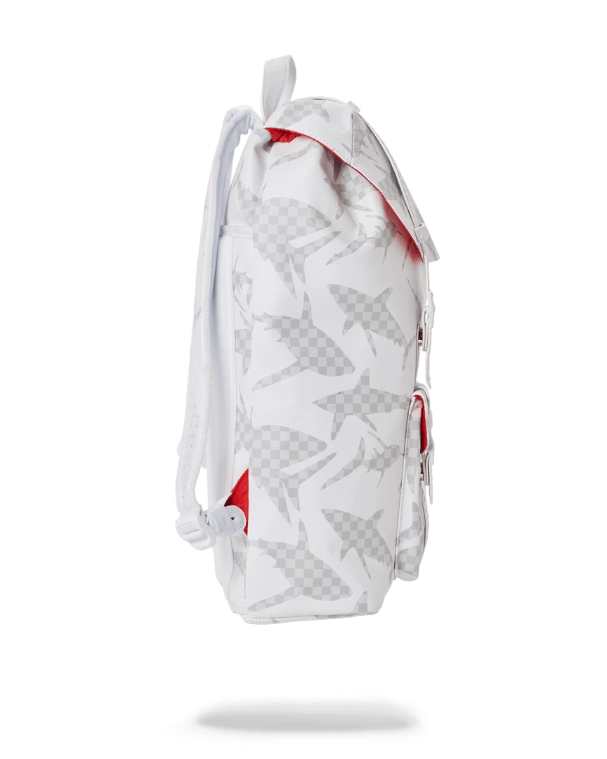 Dimensions: 20.5″ x 5″ x 11.5″ • Top Flap opening w/ adjustable magnetic snap buckle closure • Draw-string closure • Front pocket with adjustable magnetic snap buckle closure • Ergonomic mesh back padding • Adjustable straps for custom sizing • Nylon zippers with metal hardware • Embossed sharkteeth straps • Slide through back sleeve connects to carry-on luggage to free your hands