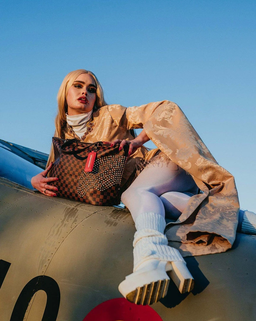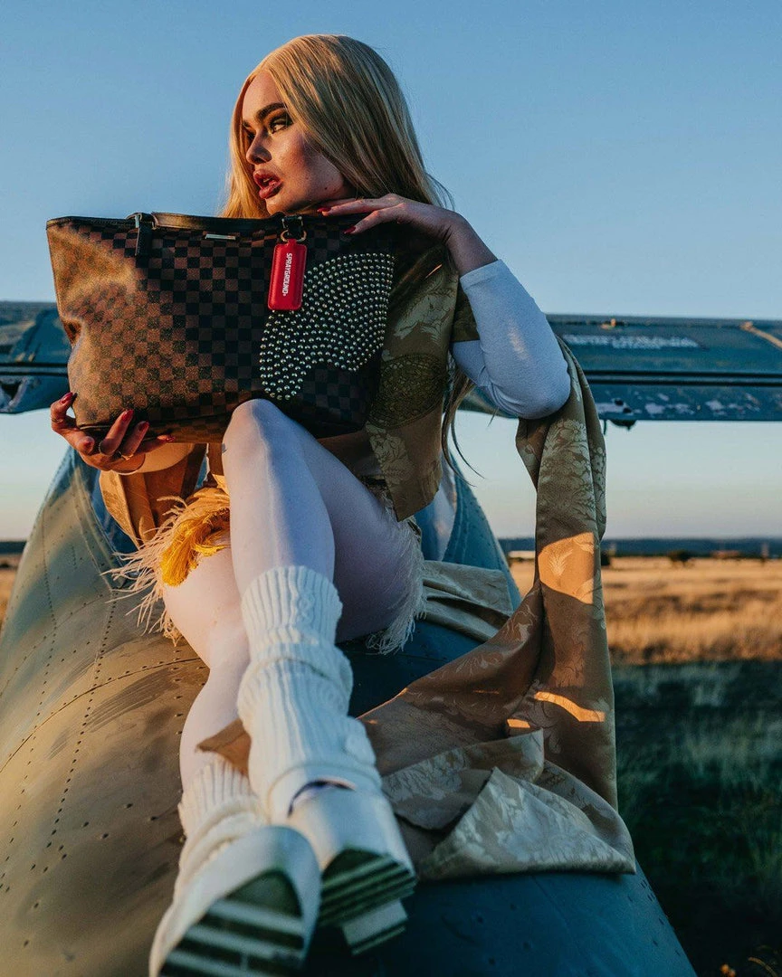 Dimensions: 19″ x 6.5″ x 11.5″ • Top zipper opening • Top double handle • Sprayground keychain • Gold zippers with metal hardware