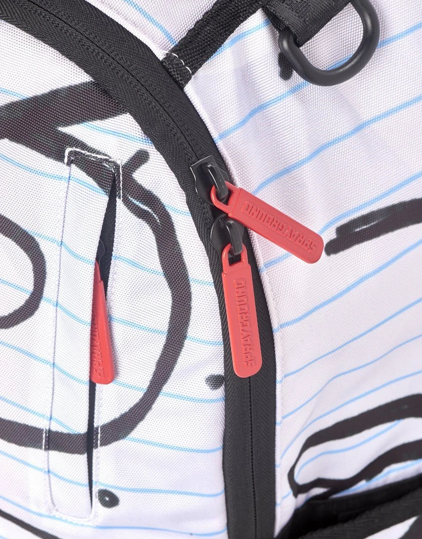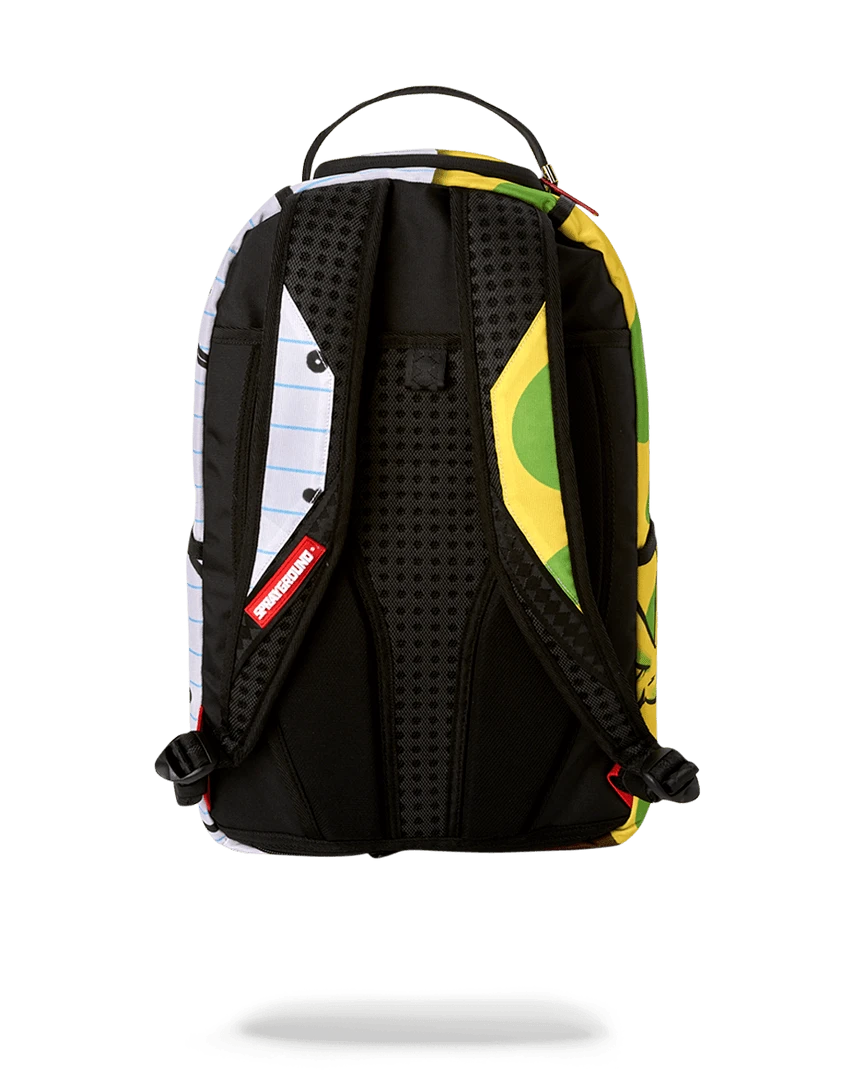 Dimensions: 18″ x 6″ x 11.5″ • Front zipper pocket • Side pockets • Zippered Stash pocket • Separate velour sunglass compartment • Ergonomic mesh back padding • Adjustable Straps for custom sizing • Red zippers with metal hardware • Metal “Sprayground Authentic” badge • Slide through back sleeve connects to carry-on luggage to free your hands