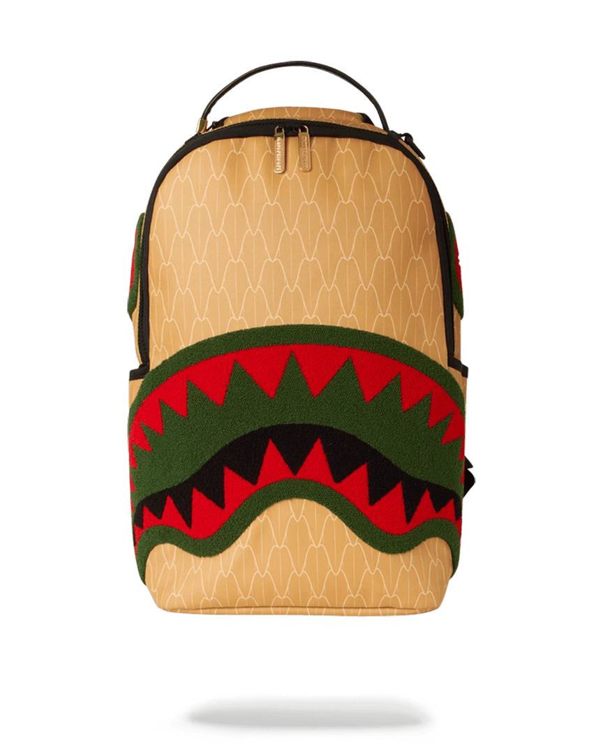 Dimensions: 18″ x 6″ x 11.5″ • Front zipper pocket • Side pockets • Zippered Stash pocket • Separate velour sunglass compartment • Ergonomic mesh back padding • Adjustable Straps for custom sizing • Gold zippers with metal hardware • Metal “Sprayground Authentic” badge • Slide through back sleeve connects to carry-on luggage to free your hands