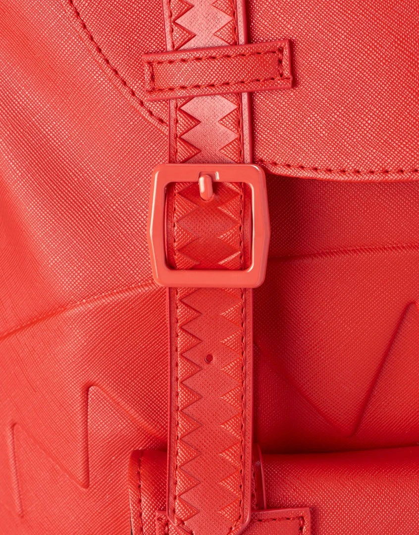 Dimensions: 20.5″ x 5″ x 11.5″ • Top Flap opening w/ adjustable magnetic snap buckle closure • Draw-string closure • Front pocket with adjustable magnetic snap buckle closure • Ergonomic mesh back padding • Adjustable straps for custom sizing • Nylon zippers with metal hardware • Embossed sharkteeth straps • Slide through back sleeve connects to carry-on luggage to free your hands