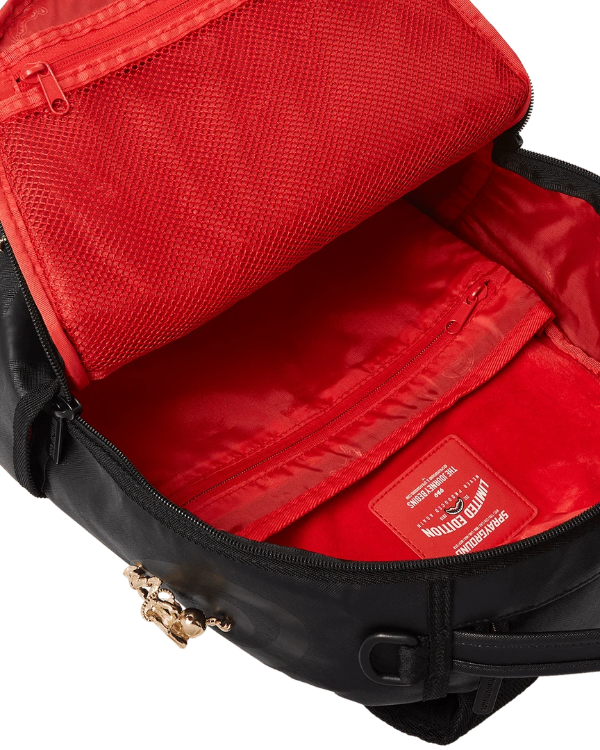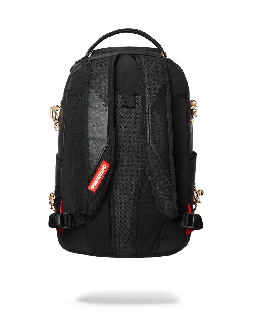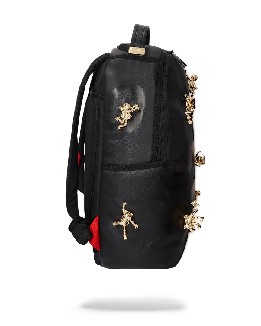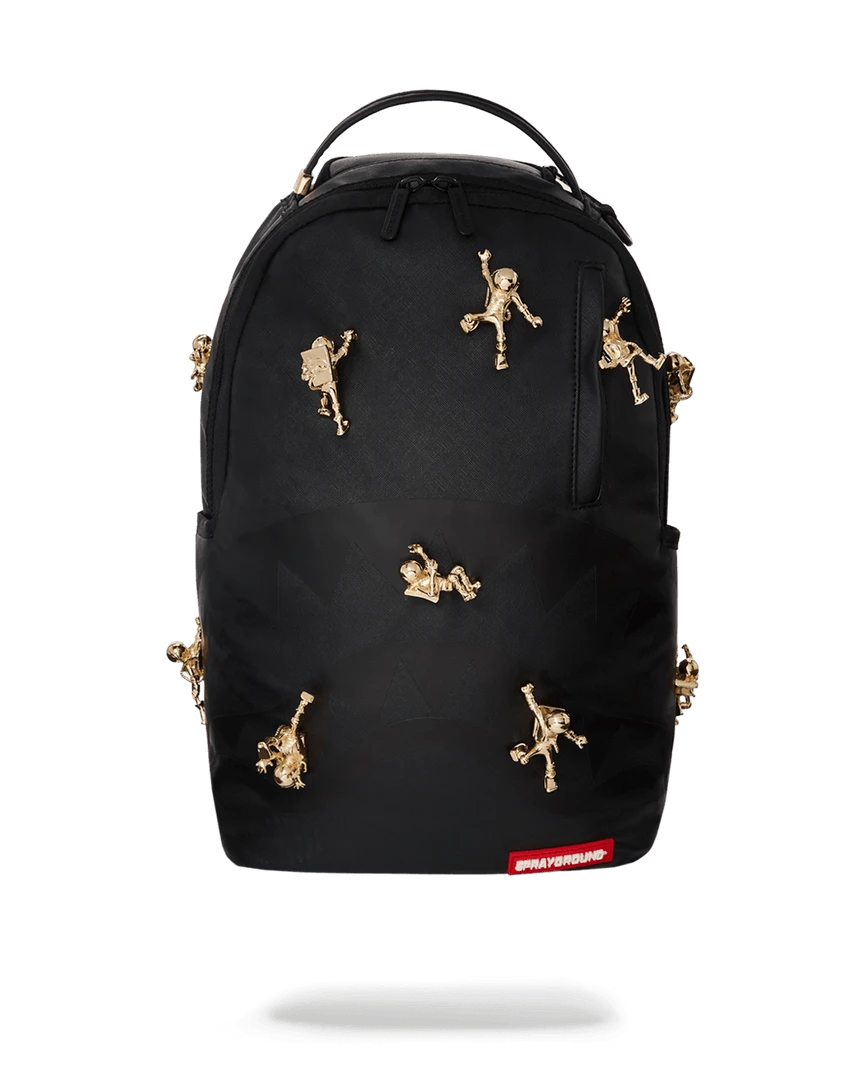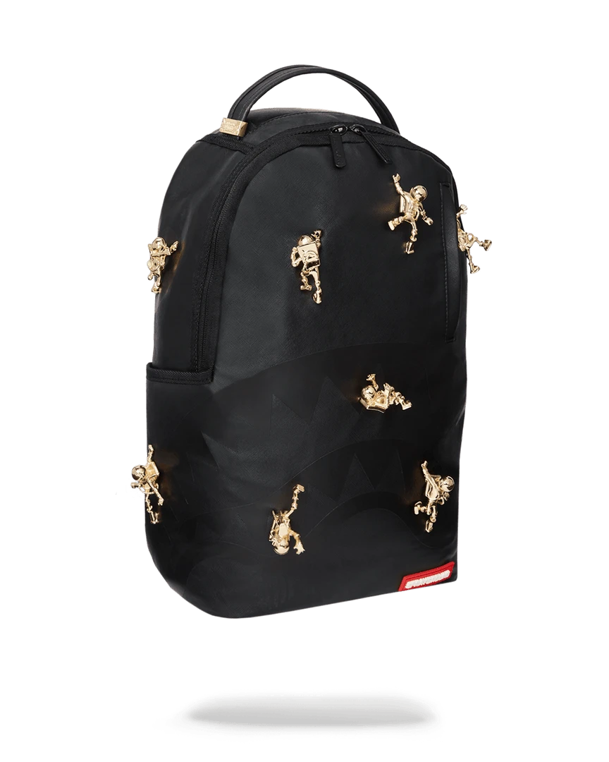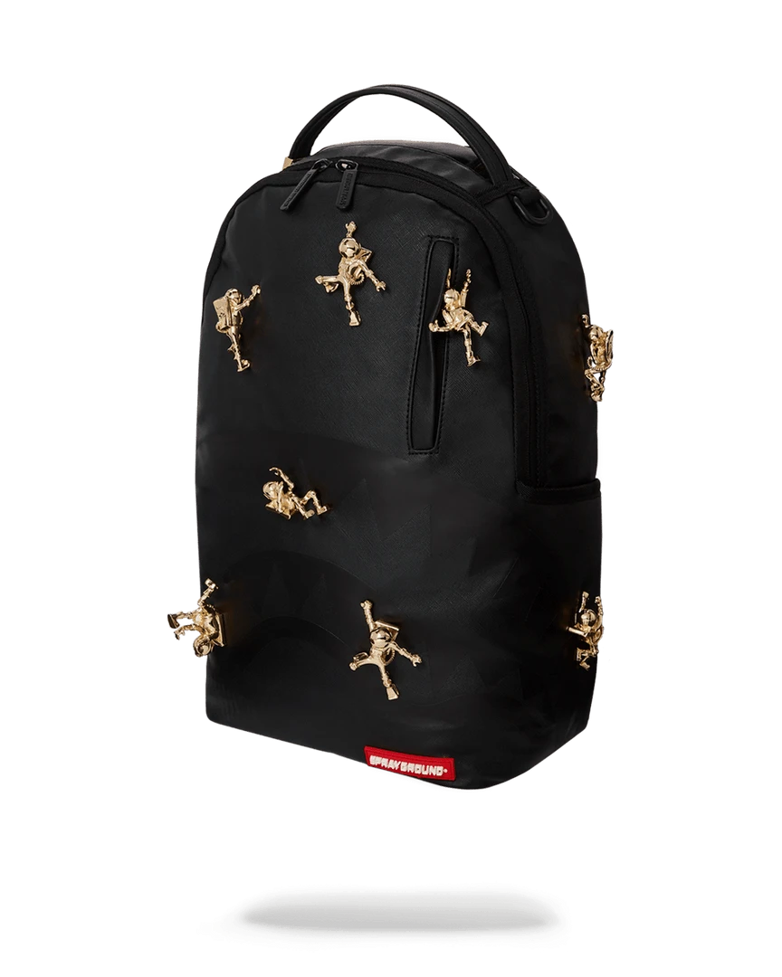 LIMITED EDITION! Never before created or seen. The 1st ever bag that incorporates gold metal toys. A follow up from the popular ninja bag comes the Lost in Space Backpack with 10 sold metal plated gold diecast toys permanently attached to the backpack. Never produced again.