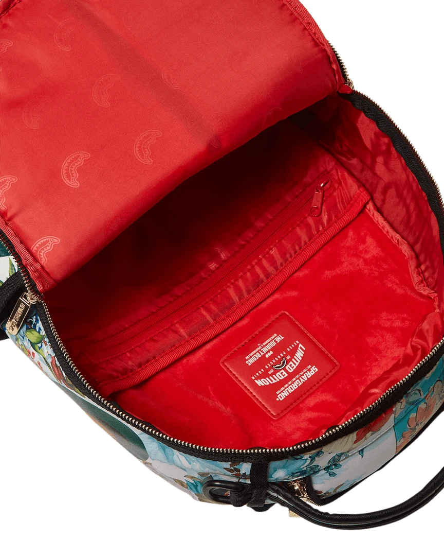 Dimensions: 18″ x 6″ x 11.5″ • Front zipper pocket • Side pockets • Zippered Stash pocket • Separate velour sunglass compartment • Ergonomic mesh back padding • Adjustable Straps for custom sizing • Gold zippers with metal hardware • Metal “Sprayground Authentic” badge • Slide through back sleeve connects to carry-on luggage to free your hands