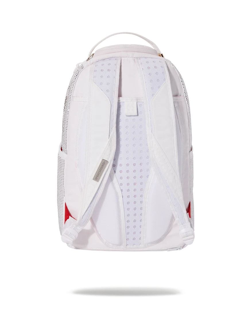Dimensions: 18″ x 6″ x 11.5″ • Front zipper pocket • Side pockets • Zippered Stash pocket • Separate velour sunglass compartment • Ergonomic mesh back padding • Adjustable Straps for custom sizing • Gold zippers with metal hardware • Metal “Sprayground Authentic” badge • Slide through back sleeve connects to carry-on luggage to free your hands