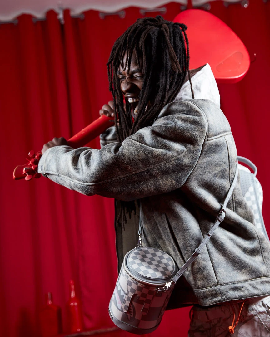 Cross-body bag with adjustable strap in a new whimsical paint can shape
