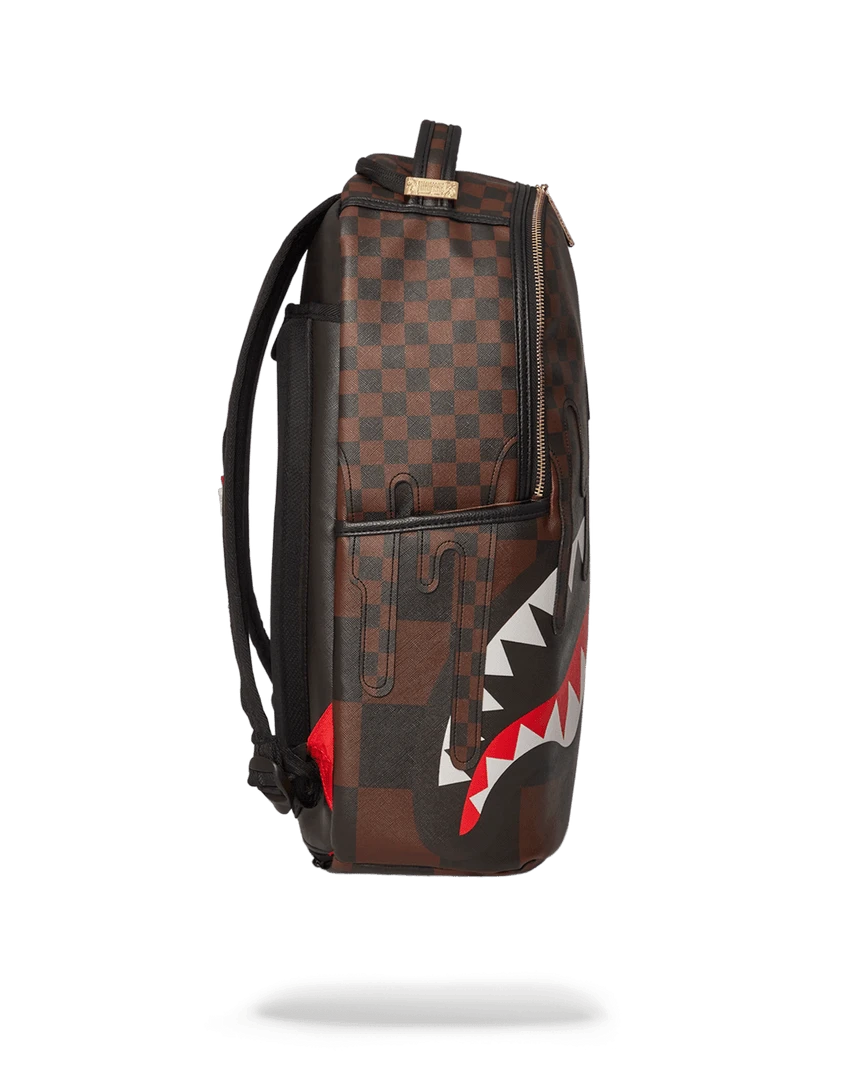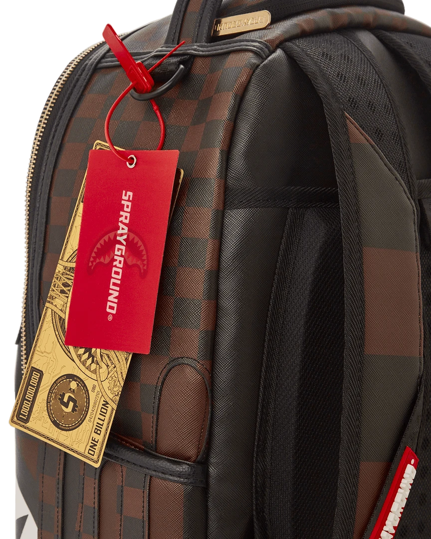 Dimensions: 18″ x 6″ x 11.5″ • Front zipper pocket • Side pockets • Zippered Stash pocket • Separate velour sunglass compartment • Ergonomic mesh back padding • Adjustable Straps for custom sizing • Red zippers with metal hardware • Metal “Sprayground Authentic” badge • Slide through back sleeve connects to carry-on luggage to free your hands